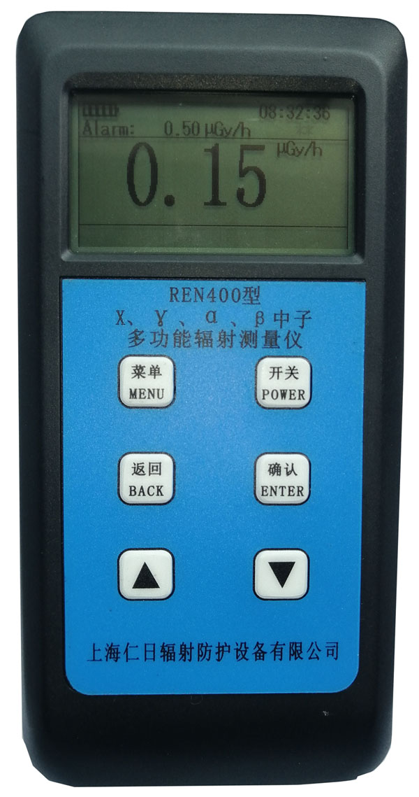 產品描述: REN400型多功能輻射檢測儀是以內置高靈敏度蓋格計數管為探測器,外接不同類型的探頭來實現對低劑量χ、γ射線,高劑量χ、γ射線,α、β射線和中子射線的檢測。作為多功能輻射巡測儀,能顯示工作場所的輻射值,自動連續測量和記錄280萬條輻射劑量率數據,更換
